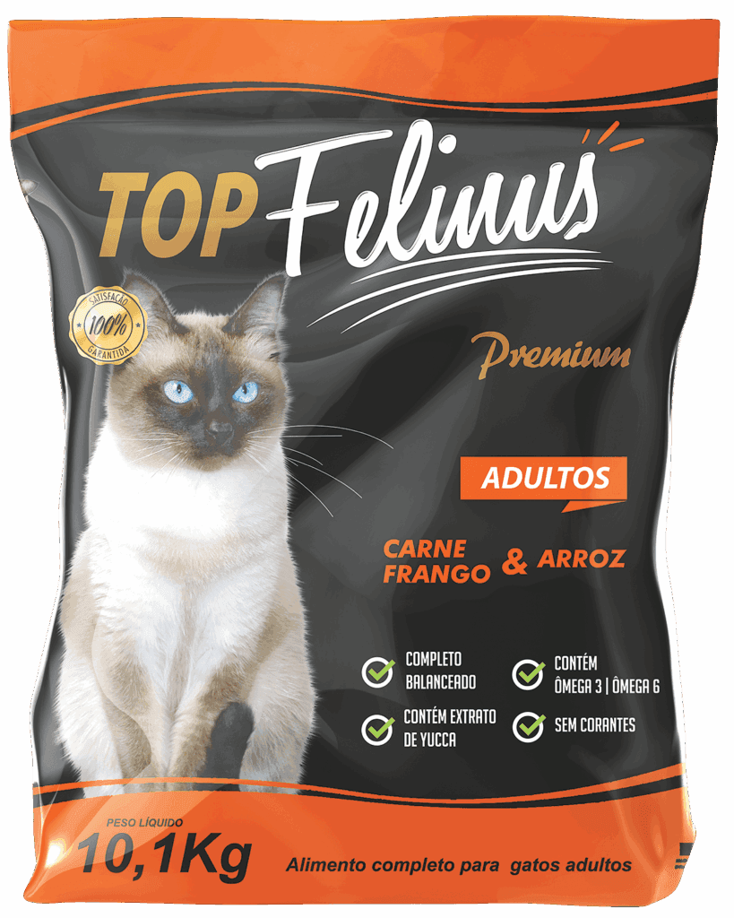| Farinha de vísceras de frango (20,00%), milho integral moído*, farinha de carne e ossos bovinos (1,00%), quirera de arroz (5,00%), óleo de frango (3,00%), farelo de glúten de milho 60*, farelo de trigo, premix vitamínico mineral (cloreto de colina, sulfato de zinco, niacina, pantotenato de cálcio, vitamina B2, vitamina B1, selenito de sódio, sulfato de ferro, sulfato de cobre, sulfato de manganês, iodato de cálcio, vitamina D3, vitamina K3, ácido fólico, vitamina A, vitamina B12, biotina, vitamina E e vitamina B6), óleo de linhaça (0,20%), cloreto de sódio (sal comum), taurina (0,10%), extrato de yucca cshidigera (0,03%), aditivo prebiótico (0,10%), aditivo regulador de acidez (ácido fosfórico), aditivo palatabilizante, aditivo antifúngico fungistático ácido propiônico), aditivo antioxidante (BHT e BHA).